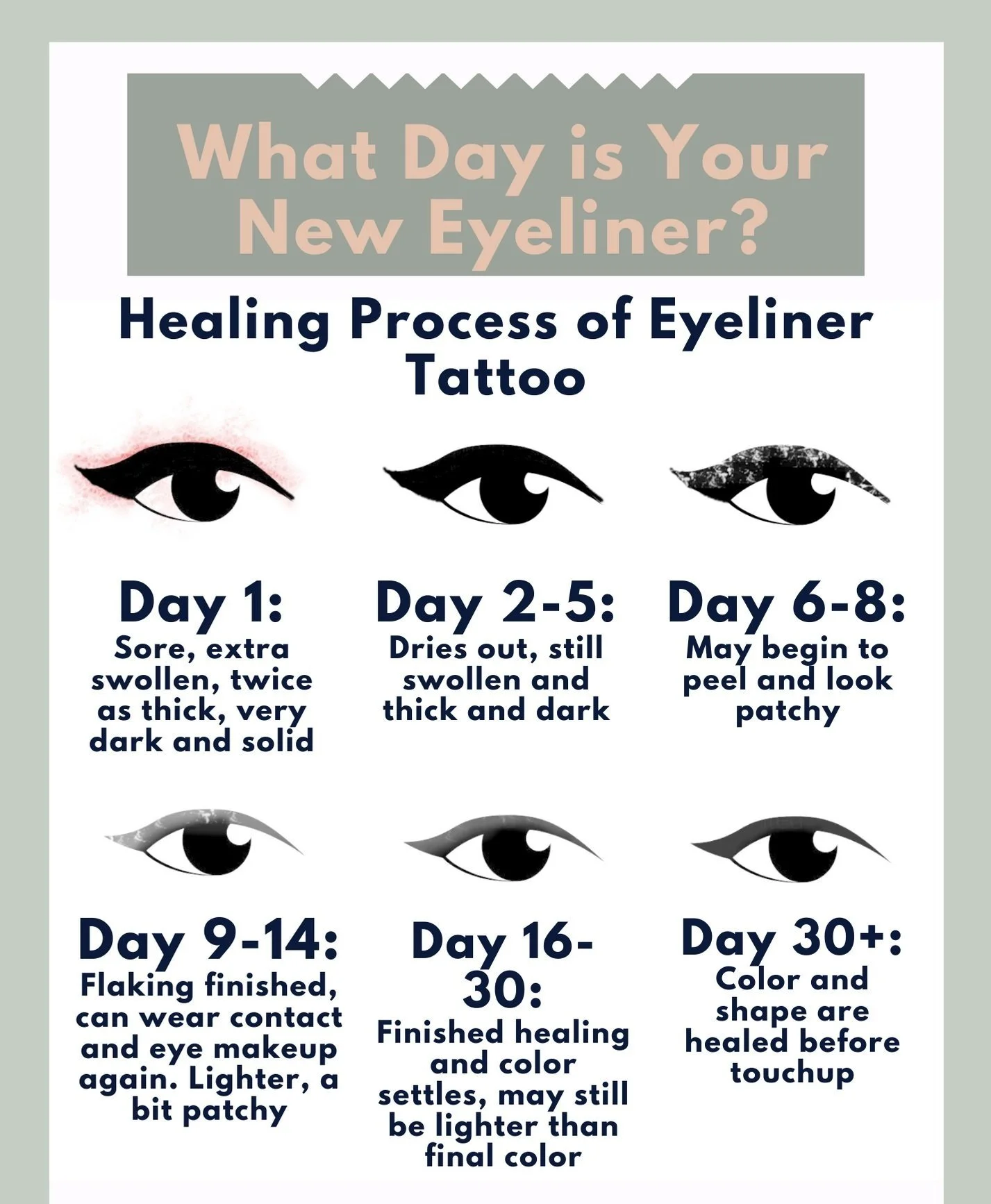 Be prepared for the color intensity to be significantly sharper and darker immediately after the procedure. This will subside and become softer as the skin heals. This process can take up to fourteen days.